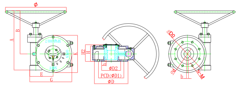 該系列蝸輪箱適用環(huán)境廣、功能全面、形式多樣(有手輪式、手輪帶鎖式等),產(chǎn)品共有11種型號(hào)。
