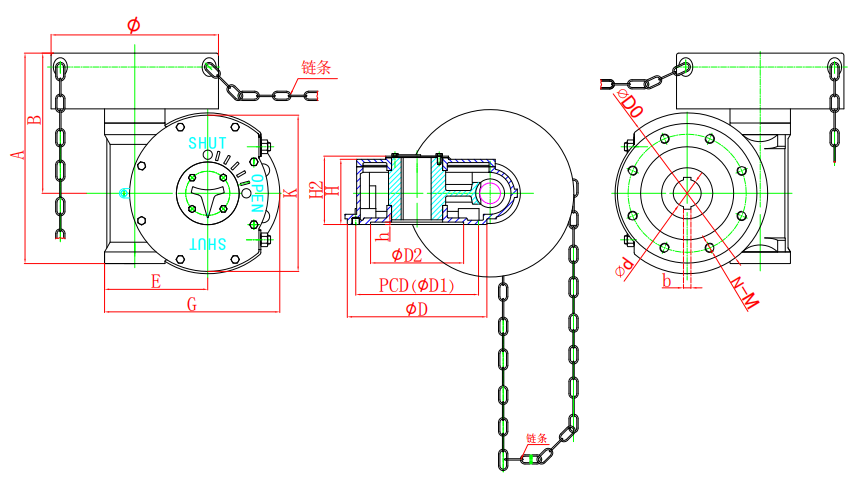 該系列是鏈輪操作蝸輪箱適用高空操作,特殊型可定做,產品共有9種型號。